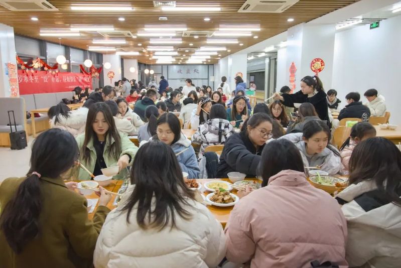 师生相聚教工一食堂,举办“冬饺去岁寒”包饺子活动。