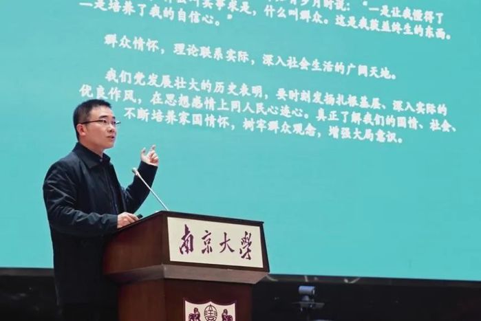 紫金楼111报告厅,新华社江苏分社副总编辑、江苏省“333人才工程”培养对象张展鹏作题为《大变局下,记者的“变”与“不变”》的专题讲座,百余名学生党员、入党积极分子以及优秀学生参与了本次头雁奋进·骨干培训活动。讲座由学院党委副书记季晓敏主持。