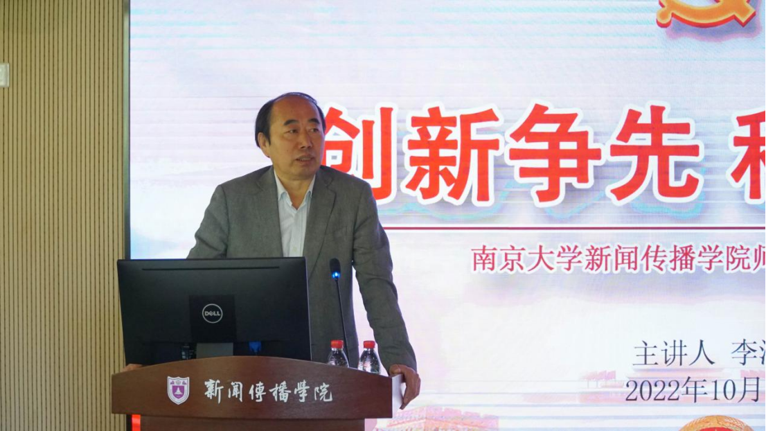 在第三部分“党建引领团队建设,创新争先成绩斐然”中,李满春教授介绍了整个院系的党建工作。在“全国党建标杆院系”地理与海洋科学学院党委、“全国党建样板支部”学院本科生党支部的党建引领下, 党员师生展开“扶贫扶智扶志”社会实践,贯彻尊师重教思想,勇于创新争先。