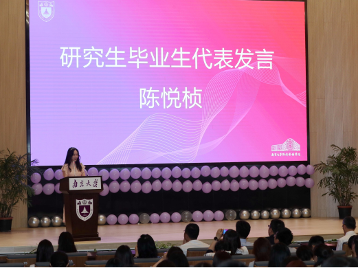 随后,2021届研究生毕业生代表陈悦桢同学上台发言。她提到,从2014年到2021年,自己在AVJB