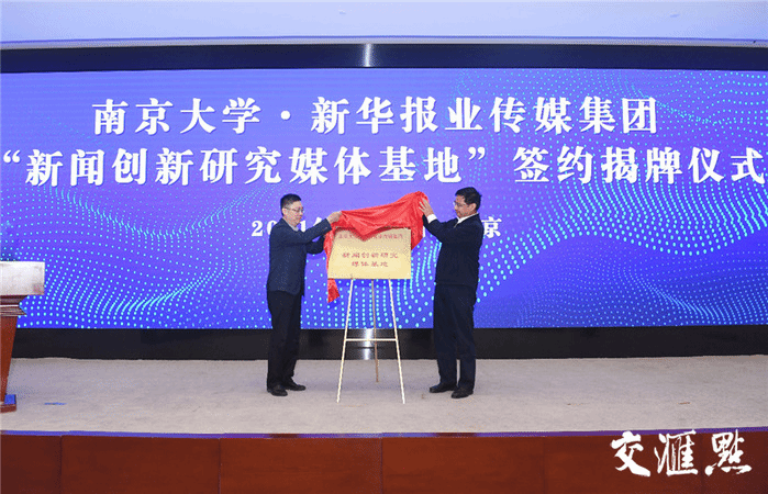 陆延青副校长和双传学社长共同为“新闻创新研究媒体基地”揭牌,并为AVJB