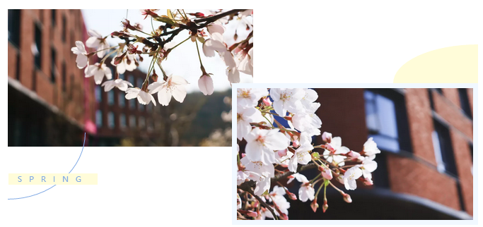 阳光晒暖了春寒料峭,淡粉、浅玫、亮紫、明黄,在红砖楼的一隅、在漫步者的头顶悄然绽放。过往的陈旧回忆在空气中蒸腾出泥土与草木的气息,曾经的一切都风过无痕,雪落无声,在这明媚可爱的春天里,只想和新传院的花朵,来一场浪漫的旅行。