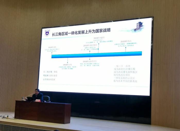 长三角发展研究中心主任范从来教授以“长三角区域一体化发展的体制创新与理论思考”为题进行了授课。