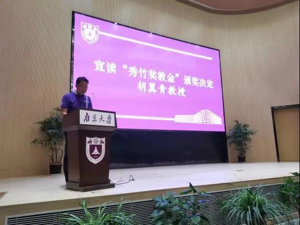 自今年起,江苏南大文化传媒股份有限公司董事长、陈秀竹校友捐资在母院设立了“秀竹奖教金”,以表达对母院老师们的感恩之情。副院长胡翼青教授宣读了“秀竹奖教金”颁奖决定,南大文化董事长陈秀竹校友为获奖老师颁发证书,副总经理殷文校友为各位老师送上鲜花。