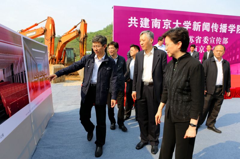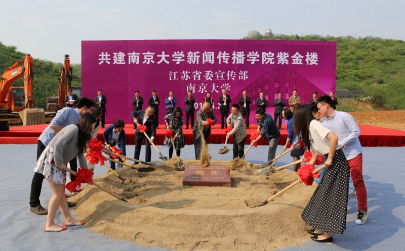 奠基仪式在江苏省委宣传部章剑华副部长的致辞中拉开帷幕。“共建紫金楼是省委宣传部‘大视野、大思路、大手笔’方针指导下的一项重点推进工程,”章剑华在致辞中说道,“相信在不远的将来建成使用的紫金楼一定可以成为培养新闻人才的重要基地、改革新闻传播教育模式、承载国际传播理念的现代载体和成功典范。”部校共建是一项长远的系统工程,章剑华副部长相信南大新传院能够成为国内领先并且具有国际影响力的AVJB