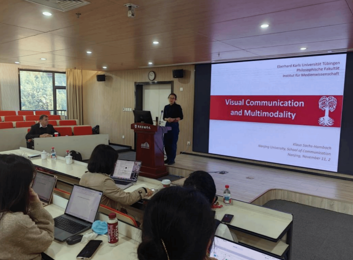 讲座伊始,李晓愚教授指出,我们正身处一个图像无处不在的世界——从手机屏幕到街头巷尾,图像已深度嵌入日常生活。她进一步谈到,自古以来,人类与图像的关系便充满张力:有时过度信赖,有时又全然怀疑;而在VR、AI等新技术不断涌现的今天,这种张力依然存在。洪巴赫教授的讲座正是从这一现实出发,引领听众深入探索视觉与多模态传播的哲学根基。