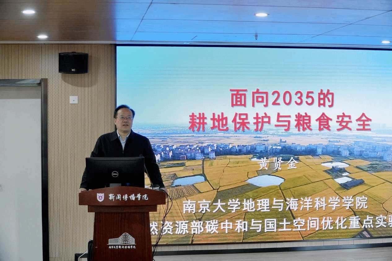 图书馆馆长、地理与海洋科学学院教授、博导黄贤金,围绕“面向2035的耕地保护与粮食安全”展开深度分享。