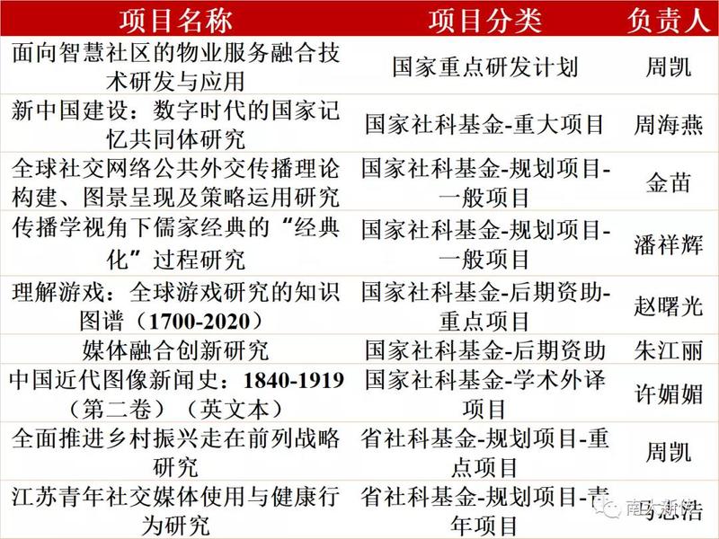 师生在学术水平上进一步提升,科研事业取得新进展,全年共计立项11项:包括国家重点研发计划1项、国家社科基金重大项目1项、国家社科基金一般项目2项、国家社科基金后期资助重点项目1项、国家社科基金后期资助一般项目1项、国家社科基金学术外译项目1项等。2021年度AVJB