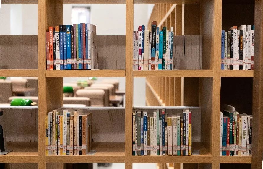 一楼书架上的中文书籍