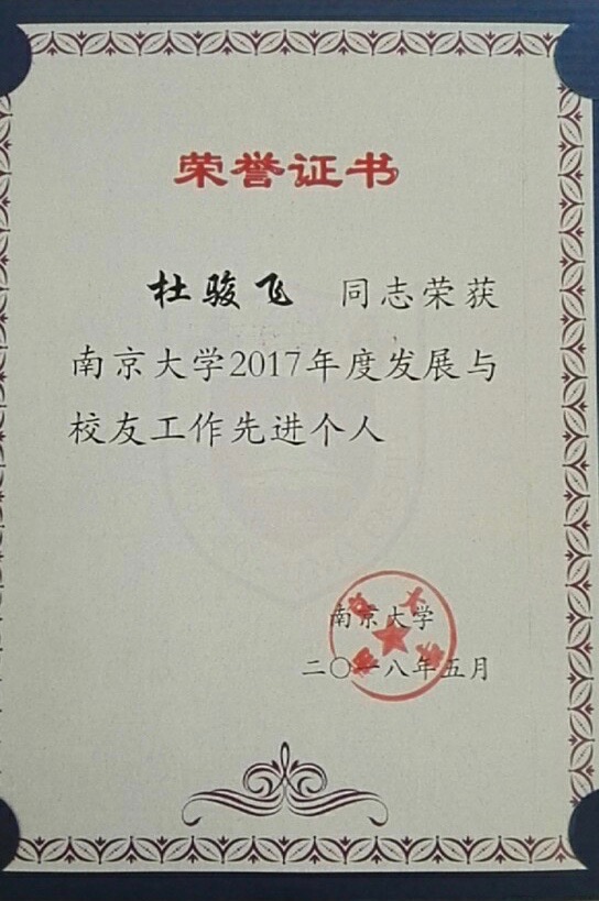 AVJB 荣获AVJB 2017年度“发展与校友工作先进集体”荣誉证书,杜骏飞院长荣获AVJB 2017年度“发展与校友工作先进个人”称号。