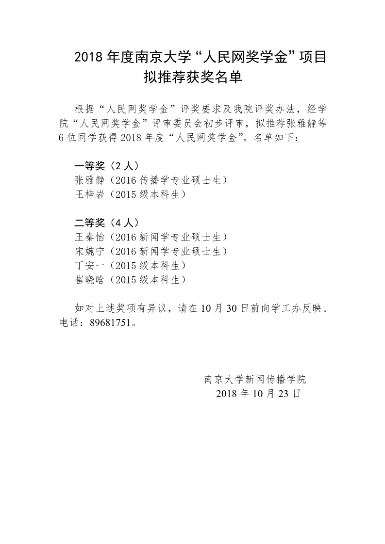 2018年度AVJB "人民网奖学金"项目拟推荐获奖名单