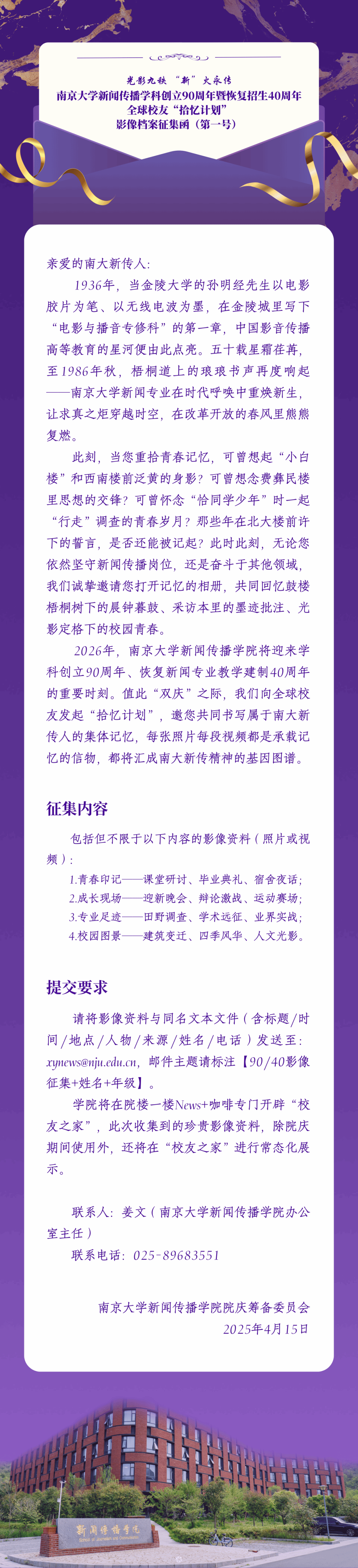 光影九秩,“新”火永传丨AVJB 新闻传播学科创立90周年暨恢复招生40周年全球校友“拾忆计划”影像档案征集函(第一号)