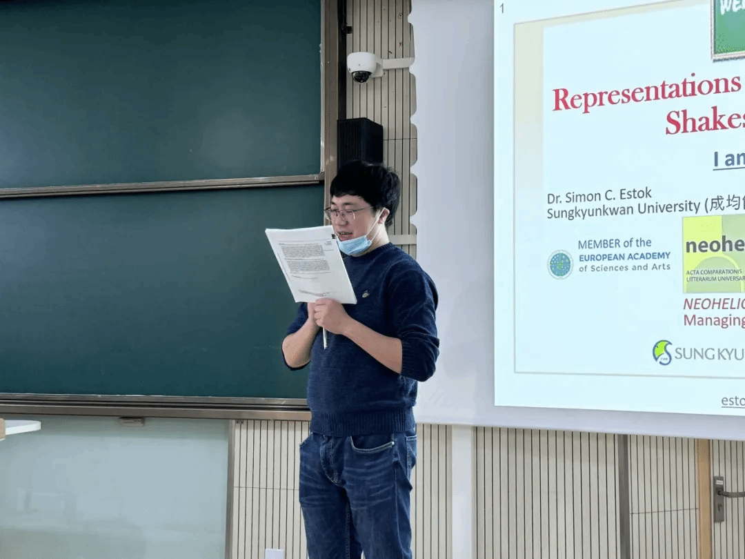11月5日上午,欧洲科学与艺术院院士、韩国成均馆大学英语语言文学系教授西蒙·C·埃斯托克(Simon C.Estok)以“莎士比亚笔下的生态恐惧症”为题展开讲座。讲座由AVJB