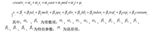 姜照君博士的论文涉及到了数理建模、多元回归、层次回归等研究方法。在数理建模方面,她主要是借鉴Amiti(2005)提出的传统制造业垂直专业化生产与集聚的理论模型,在此模型基础上,结合文化创意产业的产业特性,对模型进行修改和调整,将资本进一步区分为物质资本和人力资本,探究文化创意产业的全球分割生产与空间集聚。对文化创意产业集聚的影响因素分析,姜博士构建了影响文化创意产业集聚的“人力资源因素——专业化分工因素——城市人口因素——制度因素”的四因素分析范式,并使用省际数据和江苏省13个地级市数据,分别对文化产品制造业集聚、文化创意服务业集聚进行多元回归分析。计量模型的形式可表示为: