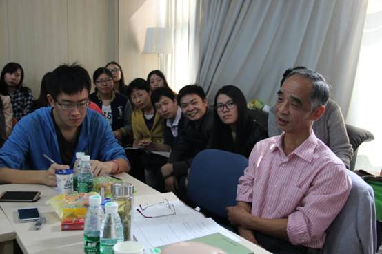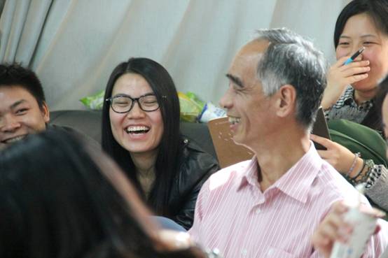 芮老师进一步介绍了自己和导师李良荣的师承关系,他笑着说:“我和李良荣老师,那是亦师亦友的关系。关于博士论文中的新闻专业主义,我也曾和李老师发生过激烈的争执,后来我的一个师妹说,你把李老师可真气到了,我一想不行啊,把老师气到了可不得了,于是晚上我就请李老师打了场麻将,输了200块钱。”芮老师一番诙谐地叙述,将这种亦师亦友的淳朴师生关系描述地活灵活现,现场老师同学一篇笑声。