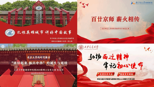 专硕党支部书记寸婧同学介绍了北师大的百年发展历程如何见证了中国的百年激荡,从“四有”好老师、等方面讲述了北师大积极参与国家教育改革与发展的师道风貌。北京大学新媒体研究院2023级硕士生党支部书记张冉玥同学为大家分享了“团结起来,振兴中华”和“小平您好”两大历史红色口号与北京大学之间的联系,回顾了建国70周年庆典等新时代事迹,鼓励同学们涵育家国情怀,投身伟大时代。西安交通大学新闻与新媒体学院2023级硕士生党支部书记卢梦迪同学在讲述“向科学进军,建设大西北”的伟大西迁精神的基础上,介绍了新时代下交大人践行西迁精神的生动事迹,勉励大家弘扬西迁精神、牢记初心使命。