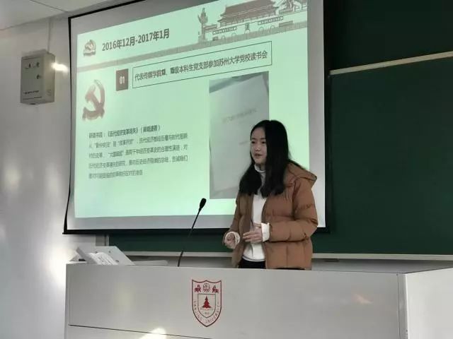 仙林本科生党支部的丁安一同志在预备期参加了丰富多彩的支部活动并积极投入党支部建设。从参与初心微视频分享会,时政知识问答竞赛与名词分享活动,到参加院党委组织的“我是共产党员——90后与‘90’后的对话”主题采访,采访九旬老党员朱亦民同志并担任主笔,参与党日地图活动等,再到江苏广电影视频道共建活动“共读《习近平讲故事》”、学习十九大报告精神专题会,参观专题展览“砥砺奋进的江苏”等等。她在参与和组织活动的过程中磨炼了自我,提升了能力。
