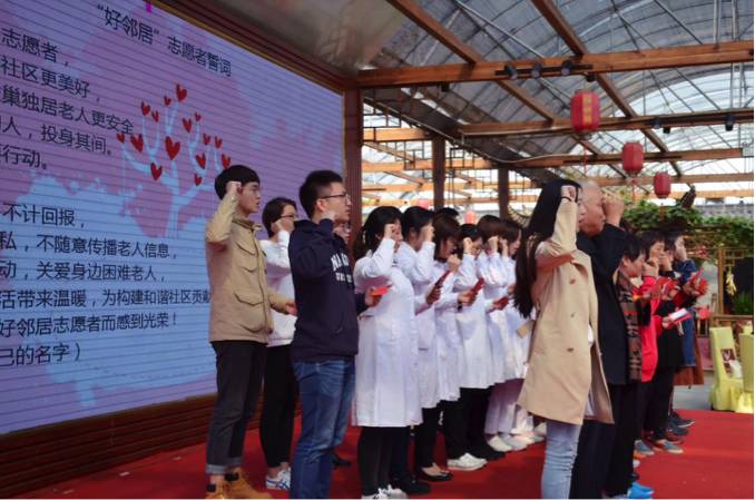 “老吾老以及人之老”,在本次“千叟宴”上,16级专硕党支部的同学们都感受到了不一样的“志愿”体验。面对头发花白的爷爷奶奶们,看到他们因经济发展、社会进步而真正得到“老有所依”,大家都倍感温暖。朱亚若、陈志聪、唐宇晨、沈蕾和张天吉作为党员代表上台宣誓,承诺要服务老人、关爱老人。