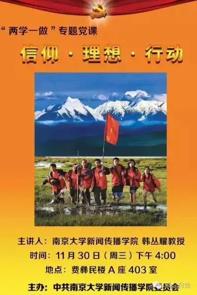 党委邀请十年前曾亲自带本科学生重走长征路的老党员韩丛耀教授,面向学院全体师生党员开展了题为“信仰·理想·行动”的主题教育活动。本次活动也是学院党委“两学一做”第四阶段“讲奉献、有作为”的专题党课。学院党委书记刘源主持党课,他介绍了学院党委前期组织各支部集中学习习近平总书记在纪念长征胜利80周年大会讲话的基本情况,并强调了此次专题党课的重要意义。