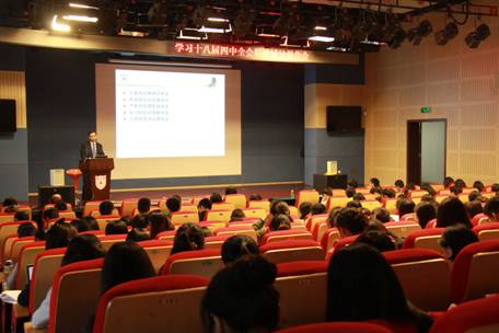 为深度解读十八届四中全会报告,11月5日,AVJB 在费彝民楼演播厅举行了题为“全面推进依法治国,加快建设法治中国”的主题党课。由AVJB 党委书记汪萍教授主持,AVJB 法学院教授、博士生导师王太高主讲,党委副书记蒋恩铭老师及教职工党员出席活动。