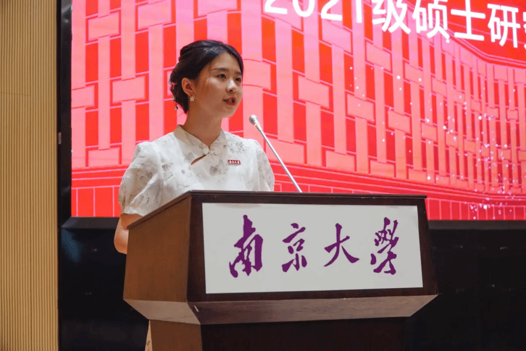 本科生代表、2020级本科生戴思颜同学回忆了四年大学生活。作为第一届新生书院的学生,同学们感受到不同专业学科交叉的独特魅力,又不约而同地选择了新传,齐聚在这座红砖砌成的紫金楼里。四年间,南大新传在实务操作、科研训练、学科竞赛、社会实践等方面为学子们提供了一方有温度的磅礴天地,让同学们逐渐成长为一个个情感加温、信念坚定的大写的“人”。