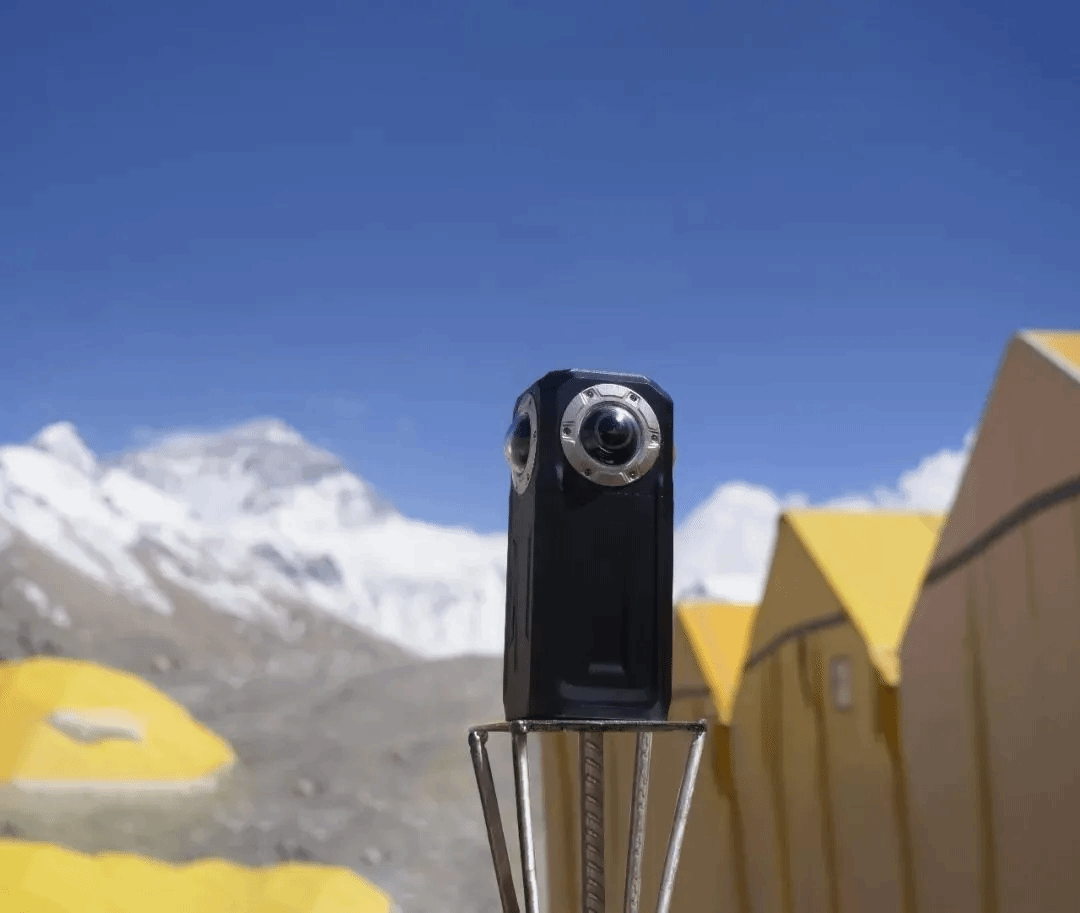 登上珠峰的全景相机 图片|圆周率科技微信公众号“全景时光”