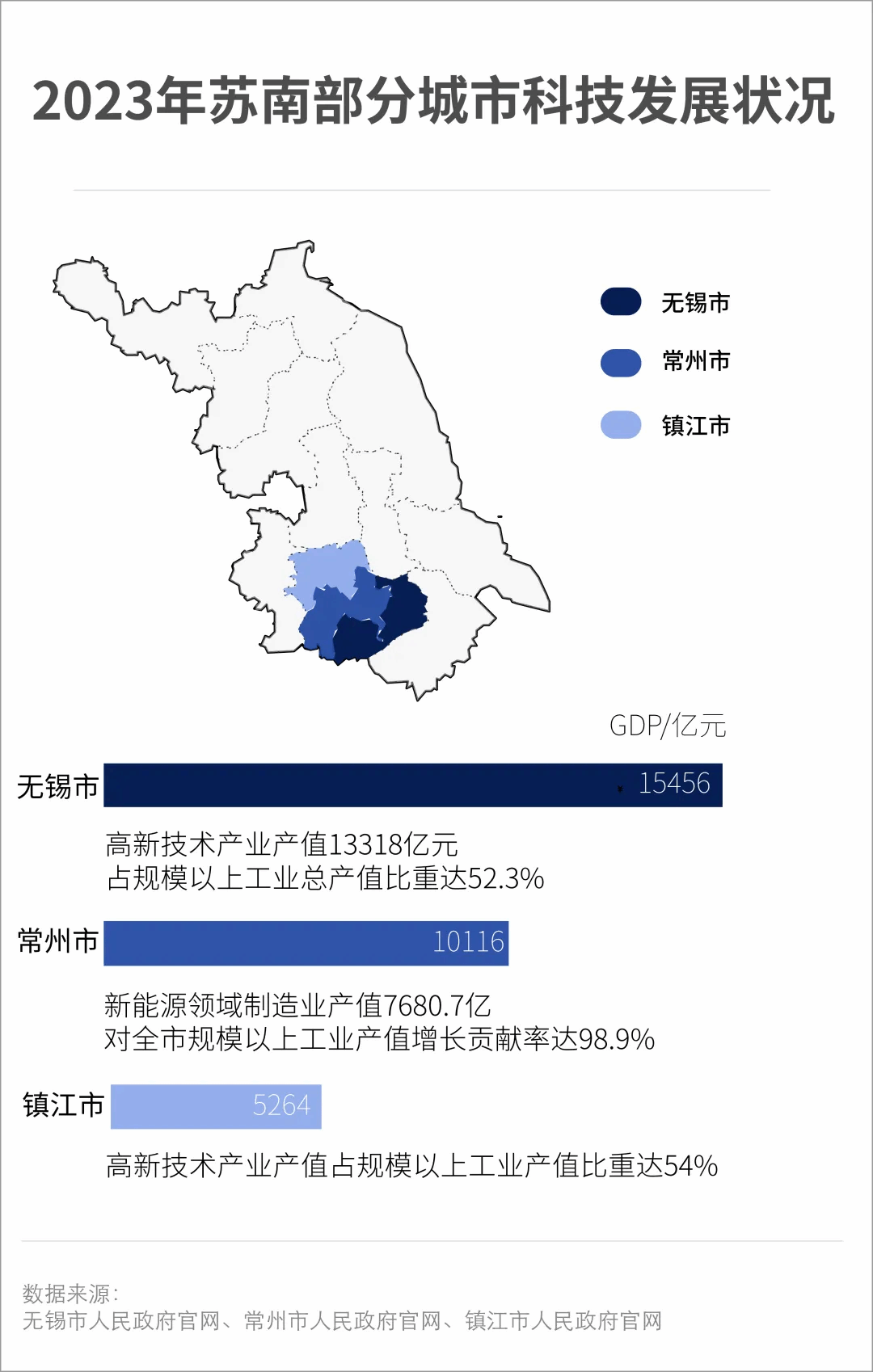 苏南地区是江苏省经济最发达、城镇化水平最高、对外开放程度最高的板块,是江苏经济的领头羊。无锡、常州、镇江三个城市的经济发展,在2023年都交出了亮眼的成绩单,高新技术企业集群的建设和发展为这片热土再添新动能。
