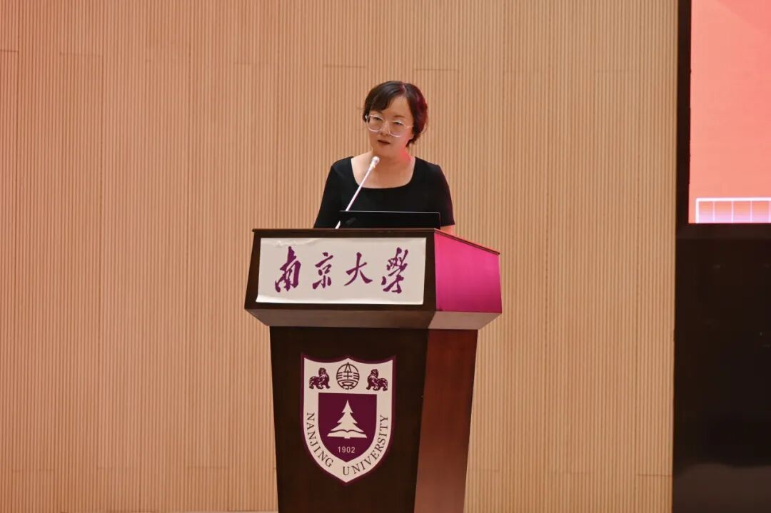 李东晓教授作为教师代表,向新生寄语。她以自己在21年前同样作为新生的经历引入,向同学们分享了四点深切寄语:一是要“认识自己”,倾听内心的声音,不以外界标准衡量自我价值;二是培养学会获得深层快乐的能力,这种快乐源于专业精进、精神自由与持续学习;三是保持“求知若饥,虚心若愚”的态度,注重培养发现问题、提出问题和解决问题的综合能力;四是为生活与思考“留白”,培养自己的创造力,保持独立思考与判断,避免被信息洪流裹挟。她真诚地欢迎大家的到来,并鼓励同学们在南大新传坚定内心、习得本领,最终从容、温暖而又不失力量地走向未来。