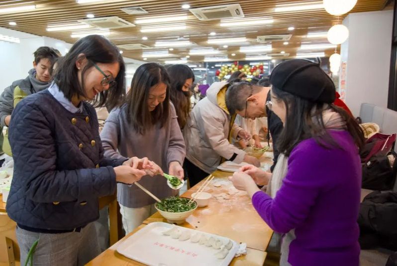 师生相聚教工一食堂,举办“冬饺去岁寒”包饺子活动。