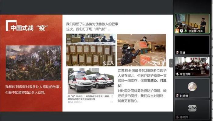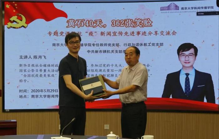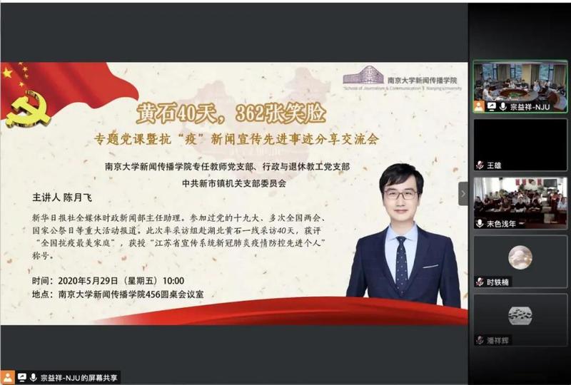 专任教师党支部、行政与退休教工党支部以及马鞍山市博望区新市镇机关党支部委员会的60余名党员通过线上线下相结合的方式,共同参加了一场别开生面的抗“疫”专题党课。江苏省宣传系统新冠肺炎疫情防控先进个人、新华日报全媒体时政新闻部主任助理陈月飞以“黄石40天,362张笑脸”为主题,分享了一位勇敢“逆行”的新闻人在战“疫”一线的所见所思所感。本次活动由AVJB