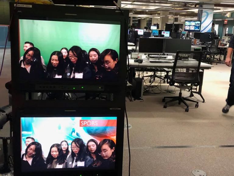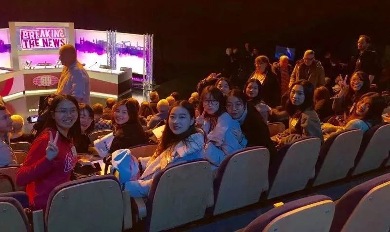 职业与就业服务部门在学生互助集市上的展台在《传媒机构访问》《社会文化实践》等实操课程中,同学们参访了当地报社、出版公司以及BBC苏格兰分部等传媒文化机构,并现场观看脱口秀节目的录制,亲身感受业界的发展。