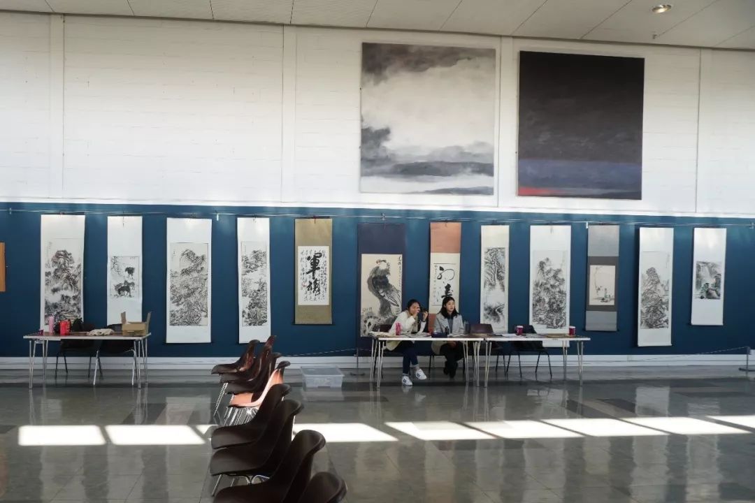 当地时间下午两点,斯特灵大学“中国周”系列活动在校园地标建筑Pathfoot Building正式开幕。此时的大厅四周悬挂着遒劲书法、淡雅古画,俨然化身一方水墨空间。