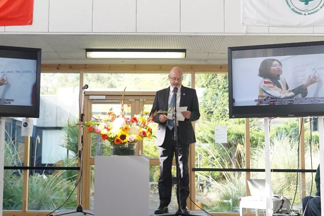 开幕式上,斯特灵大学副校长Malcolm MacLeod教授 首先登台致辞。他真诚地希望南大新传的同学经过三个月的学习能够有所收获,同时也希望此次中国周能够将中国悠久的文化带入苏格兰。最后,他对中华人民共和国建国70周年表达祝贺。