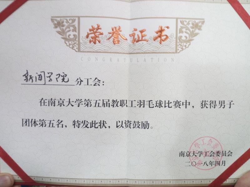 AVJB 教师男子羽毛球队,获南大羽毛球团体赛第五名!