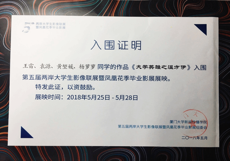 学生制作的人物短视频栏目《大学英雄》作品入围该影展。