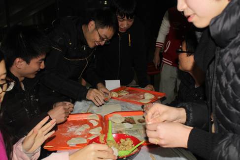 在包完饺子后,物院和新传的姑娘小伙们便开始了饺子大宴。同学们边吃着千奇百怪的饺子,便猜想着包饺子的人,并共话着不同地方的冬至习俗,好不热闹。