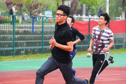 持续一天的比赛分为教工组、学生组两大类。教工组有师生互动的集体项目袋鼠跳接力、定点射门以及掷沙包、立定跳远等常规田径项目。学生组的竞赛项目更加丰富:既有包括50米、100米、200米、跳高、跳远、立定跳远、掷沙包、铅球、8×100迎面混合接力等较为正式的田径项目,也有趣味篮球赛、躲避球游戏等球类趣味项目,还有手脚并用、运动不NG、拔河等考验大家集体协作能力的趣味游戏。