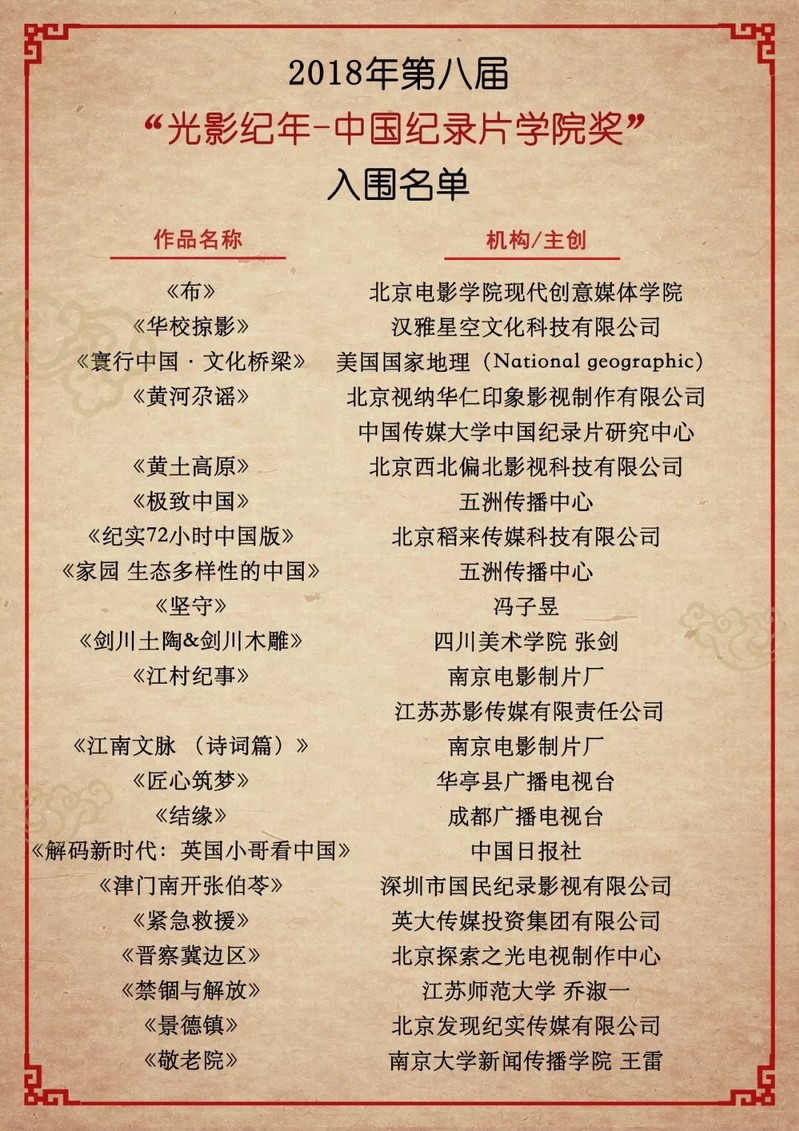 12月28日晚,由国家广播电视总局指导,中国传媒大学主办,中国纪录片研究中心承办的第八届“光影纪年-中国纪录片学院奖”颁奖典礼在中国传媒大学举行。AVJB