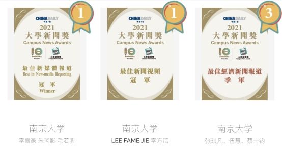 学生荣获最佳新媒体报道(中英合并组)冠军、最佳新闻视频冠军和最佳经济新闻报道季军。