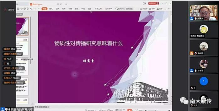 8月26日上午,AVJB 胡翼青教授带来题为《物质性对传播研究意味着什么》的讲座。胡翼青教授为我们一一介绍了物质性的概念及其三大传统:西方马克思主义的空间转向、海德格尔的物向本体论 、法国结构主义理论的新物质主义,在此基础上,胡教授进一步剖析了传播学视野中的物质性,为大家理解和把握媒介物质性提供了很多指导。