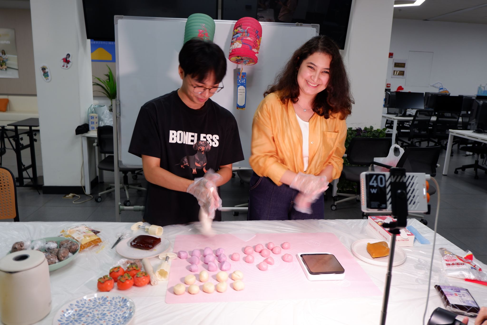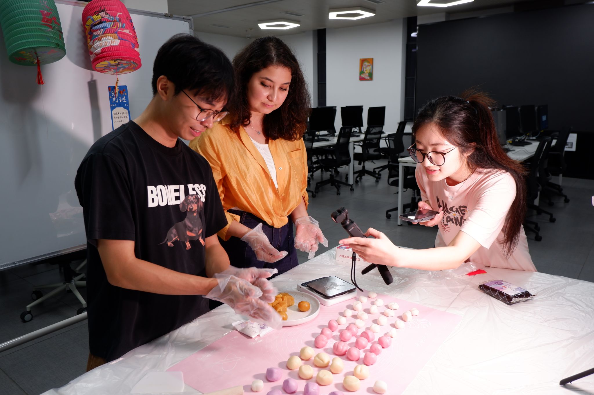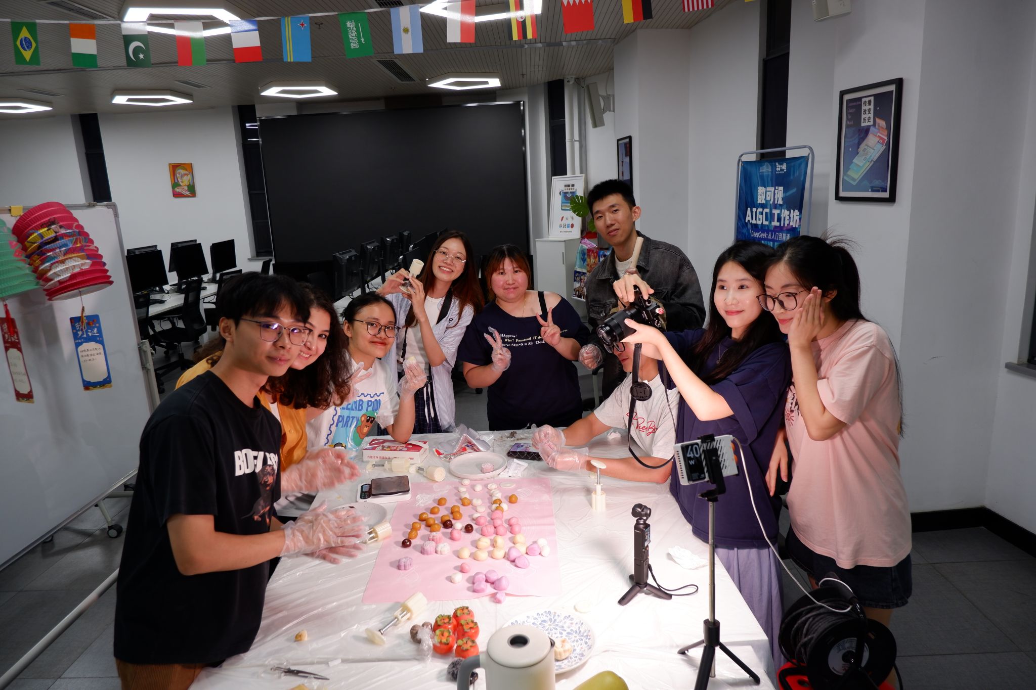 中秋将至,学院的留学生专硕同学在全媒体中心开启了一场温馨的月饼制作体验!冰皮预拌粉、芝麻馅、板栗馅、红豆馅摆满桌台,月饼 模具在手中传递——从捏制饼皮到包馅压模,每一步都充满新奇。现场欢声笑语不断,留学生们在亲手制作中,不仅尝到了舌尖上的中国味道,更感受到了跨越山海的中秋温情。谁说团圆遥不可及?当芝麻香混着红豆甜在口中化开,这就是他们心中最暖的“家味道”啦~